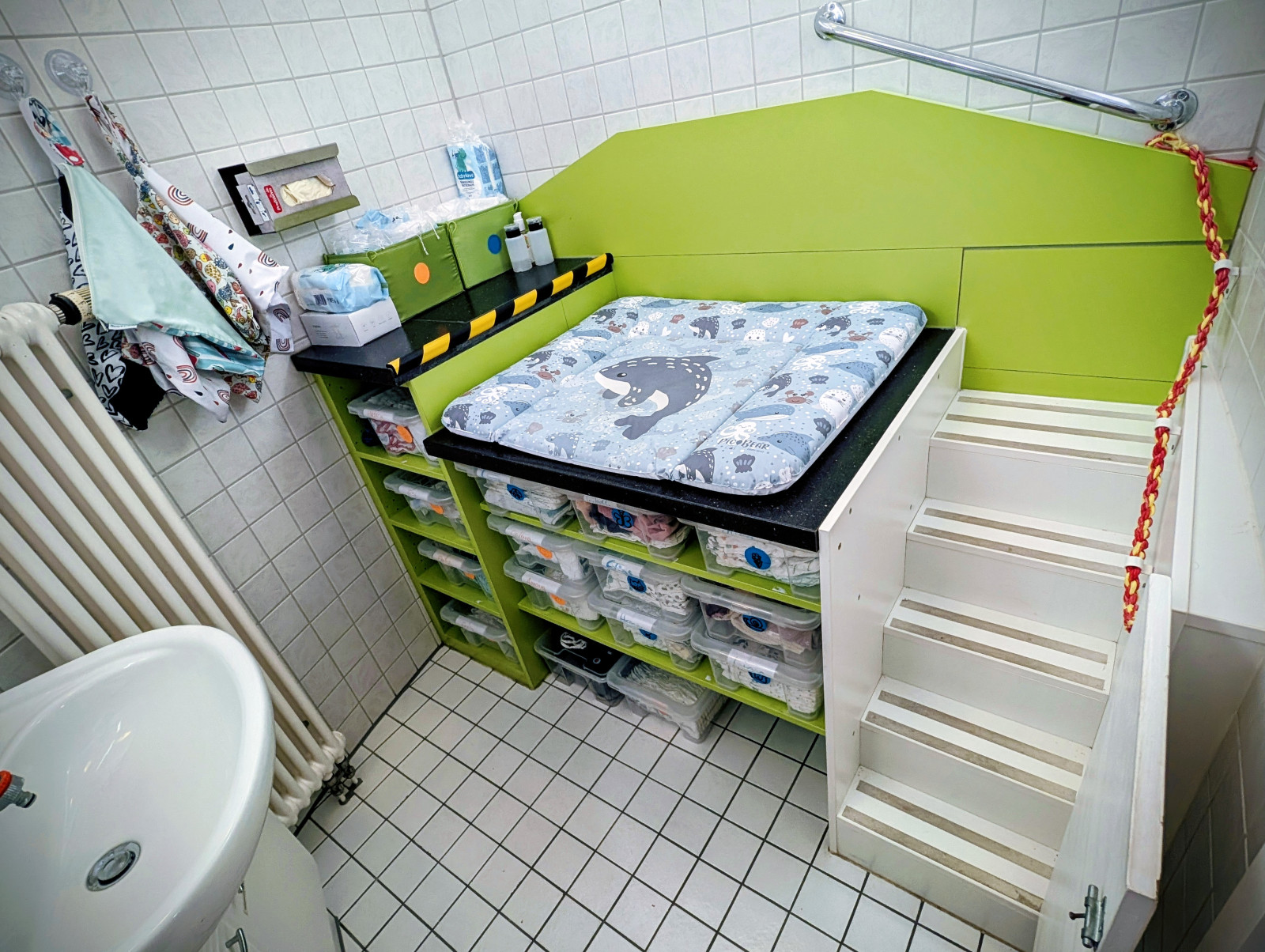 Zusätzlich gibt es einen Wickelraum und ein Duschbad mit WC.